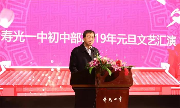 寿光一中校长、党委书记魏华中发表致辞。他向大家送上了新年祝福,肯定了初中部一年来的教育教学成绩,感谢教师们的努力奋进,感谢家长们的倾力支持。他希望初中部全体师生继续发扬不怕苦、不怕累、永争第一的优良传统,同心协力,锐意进取,开创学校发展新时代。