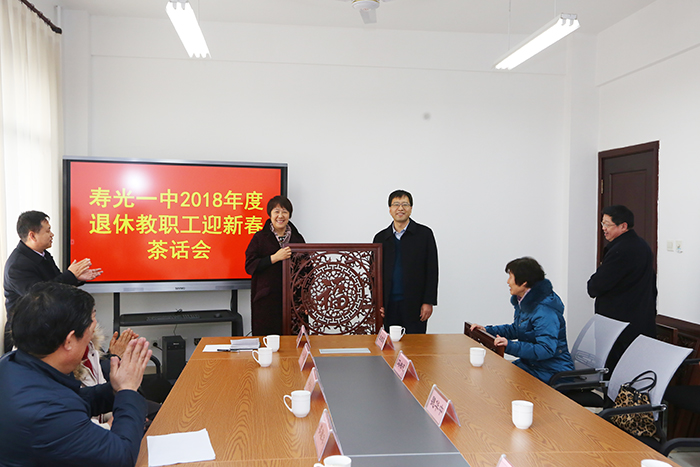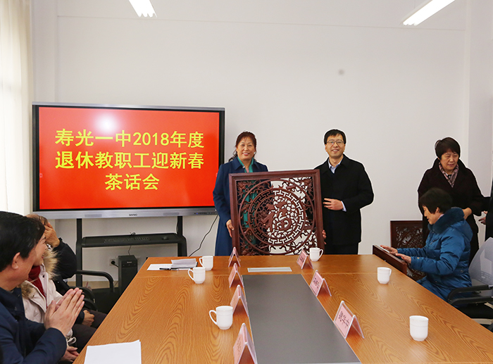 学校还为退休教师教师代表准备了新年礼物——木雕福字,祝愿退休教师们四季有福,笑口常在。魏华中校长希望各位退休老教师一如既往关心和支持学校发展,“常回家看看”,继续为学校的发展和兴盛献计献策!最后,真诚地祝愿各位退休教师师身体健康,阖家幸福,万事如意。