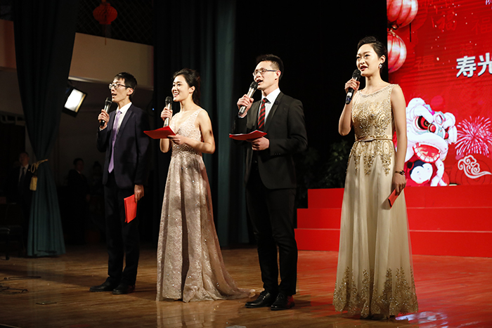 玉犬辞岁,金猪迎春。迎新春文艺晚会在欢快、喜庆的《节日欢歌》中拉开帷幕。