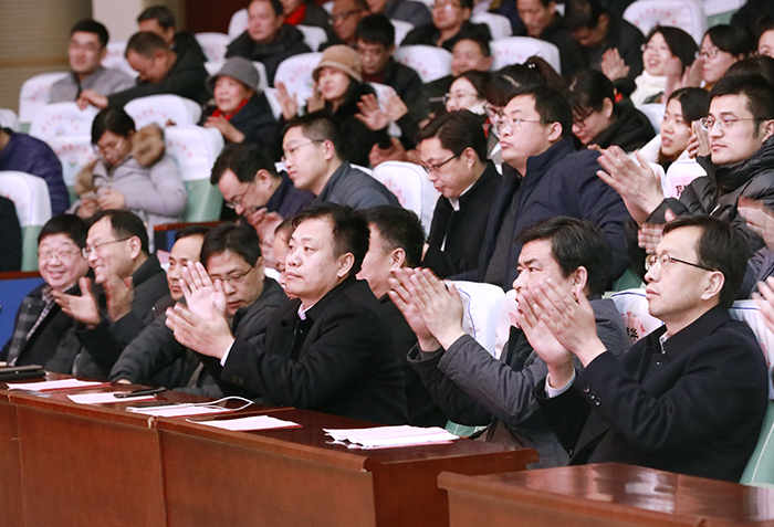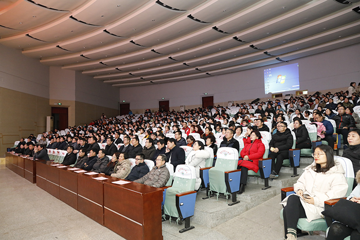我校校长、党委书记魏华中发言,他总结了2018年学校在党建、育人成绩、名生培养、特长竞赛、养成教育、惠民服务水平、学生职业生涯规划等十大工作亮点,消息振奋人心,成绩催人奋进。这些成绩背后凝聚着全体教职员工的汗水,他代表学校感谢全体教职员工的辛苦付出,感谢他们在过去一年的无私奉献。他希望全体教职员工融入学校发展,守望同一个目标,把“我”变成“我们”,把一群人变成一个人,2019年同心协力、共同奋斗,努力把工作开展得更好,把生活过得更温暖,把学校推上一个发展新台阶!最后,他代表学校提前祝福大家春节快乐、阖家幸福、万事如意。