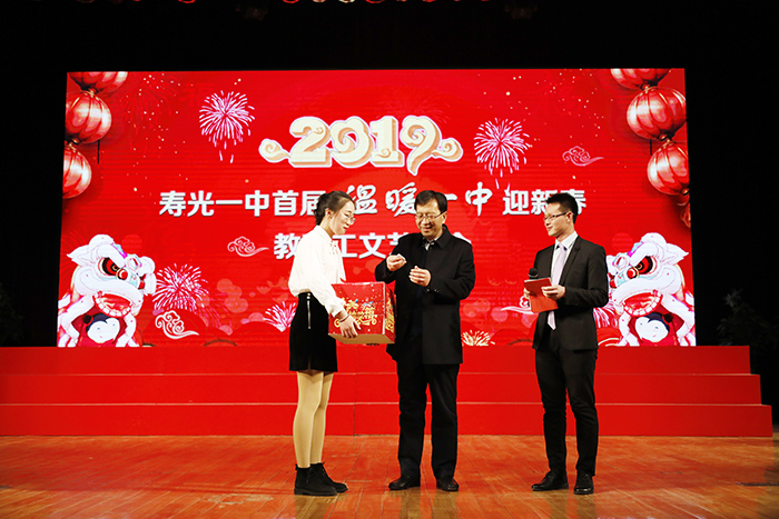 为了进一步活跃气氛,晚会穿插了4个抽奖互动环节,学校校长、学校班子成员、各处室主任、各级部主任和老教师们轮番抽奖,共计送出100多份礼品,现场气氛被彻底点燃。