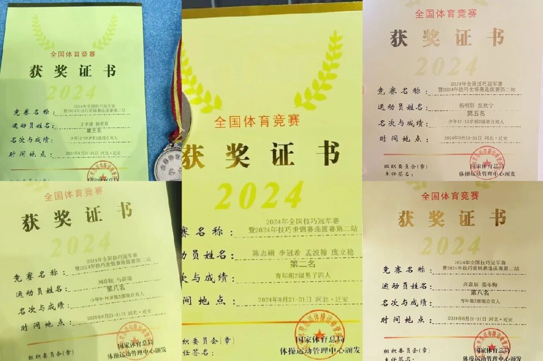 8月21日-31日,2024年全国技巧冠军赛暨2024年技巧世锦赛选拔赛第二站在河北迁安举行。本次盛会中,来自寿光一中的运动员代表分别摘得1个第一名、1个第二名、1个第三名、1个第五名、2个第八名的优异成绩,充分展示了一中健儿昂扬激越、阳光向上的精神风貌。