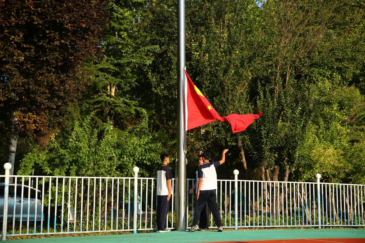 在庄严的国歌声中,开学典礼正式开始。鲜艳的五星红旗冉冉升起,全体师生肃立注目,高唱国歌,那是一幅由青春书写的画卷。