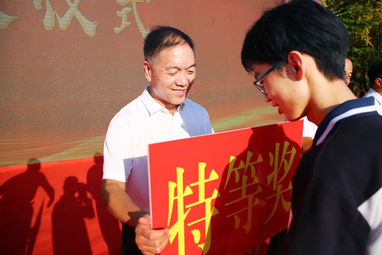 毕德亮书记希望高三同学“会当凌绝顶,一览众山小”,仰望星空、脚踏实地,循序渐进、有条不紊,向着目标、不懈奋斗。他期待高二同学“欲穷千里目,更上一层楼”,坚韧不拔的毅力和勇往直前的精神,挑战自我、超越自我,奋发图强、更上层楼。他期盼高一新生“少年当有鸿鹄志,一腔热血勇向前”,希望同学们树立目标理想,培养良好习惯,迈出、迈好第一步。他寄语贯通班同学“十年磨一剑,出鞘必锋芒”,珍惜这来之不易的机会,保持积极主动的态度,勇于探索未知领域,不断提高自己的学习能力和综合素质。