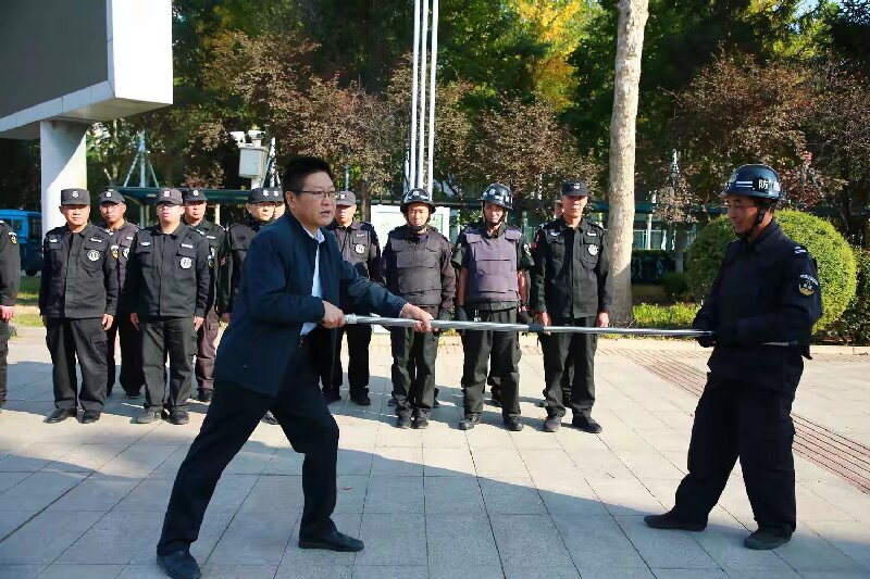 为确保安保人员能熟练、正确地操作安保设施设备。演练前,安全保卫处主任徐金光就演练活动进行了安排和分工,演示了正确的制止歹徒的动作、方法实战技能,并对保安进行了消防灭火和警械使用培训。