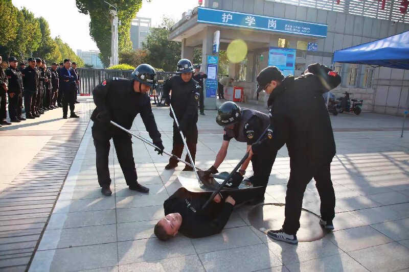 为切实加强校园安保工作,提升对突发性暴力事件的反应和处置能力,维护校园安全稳定,10月9日,寿光一中举行反恐防暴演练。