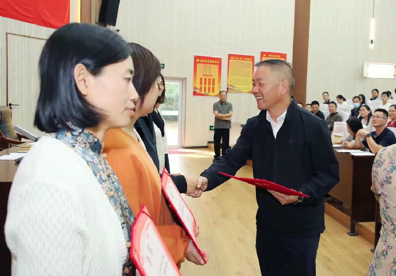 随后,教务处主任吴海生宣读2024-2025学年度“青蓝工程”获奖教师名单,学校党委书记毕德亮为获奖指导教师代表与青年教师代表颁奖,台下掌声雷动,热烈的氛围不仅是对过往成果的肯定,更点燃了新一年度师徒共进的热情。