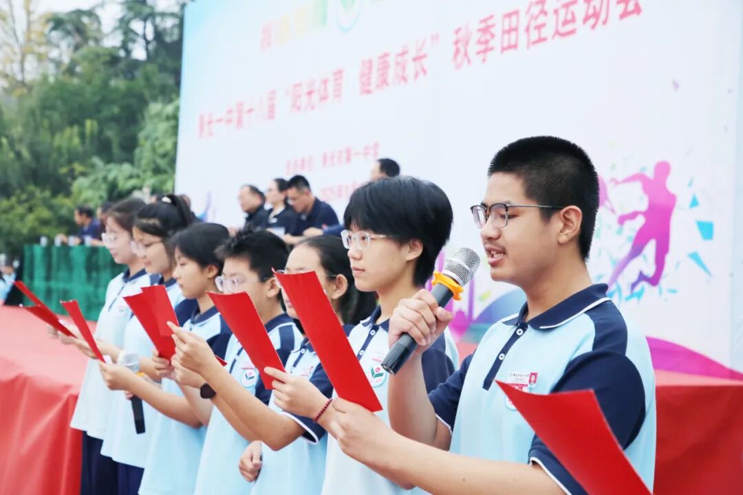 铮铮誓言,拳拳决心。裁判员代表、2024级23班学生马一鸣和运动员代表、2024级23班学生刘昱璟相继郑重宣誓,他们将在赛场上公正严明、奋力拼搏,无愧于己,无愧于心。