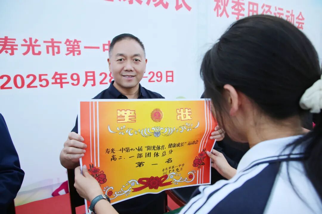 在闭幕式上,现场公布了比赛成绩和体育道德风尚奖获奖班级名单。学校领导班子为获奖班级颁奖。本届秋季运动会不仅是一场展现师生运动精神的盛会,更是寿光一中和衷共济、奋发向上、朝气蓬勃、不断创造辉煌的缩影!