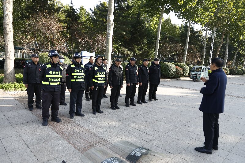 为确保安保人员能熟练、正确地操作安保设施设备。演练前,安全保卫处主任徐金光就演练活动进行了安排和分工,演示了正确的制止歹徒的动作、方法和实战技能,并对保安进行了警械使用培训。