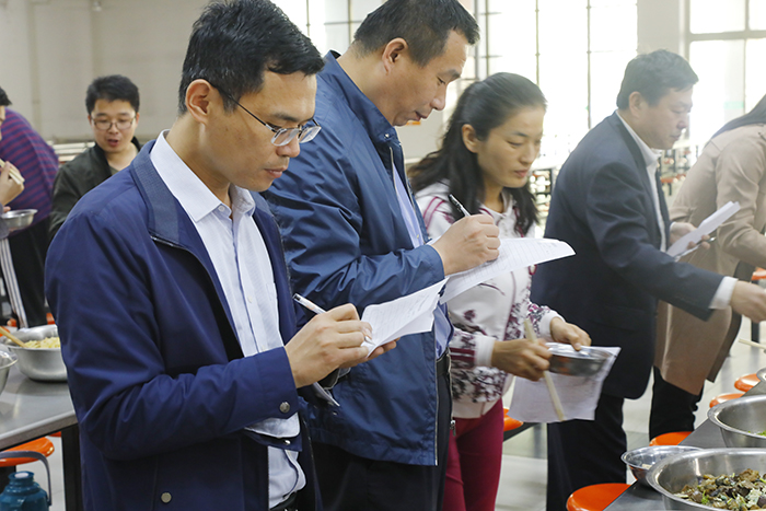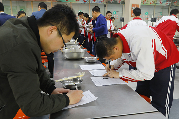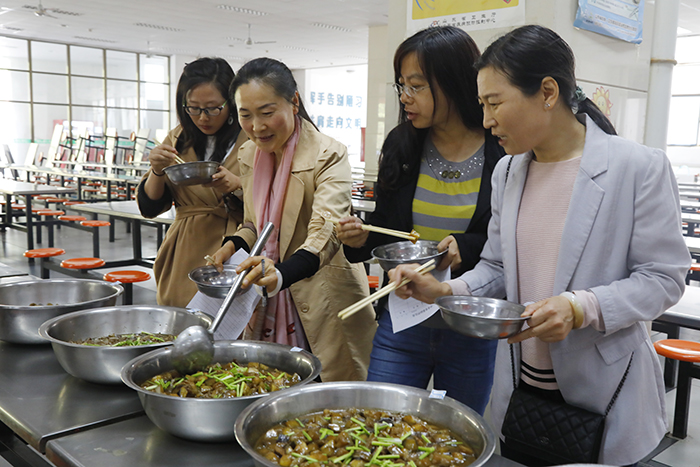 为提高学校食堂的饭菜质量、创建师生满意食堂,4月20日,我校食堂举办“厨艺大比武”活动。食堂的十四名厨师充分展示了自己的绝活。学校邀请了家长委员会的部分家长代表、学生代表、教师代表共同担任评委,对菜品进行评分。