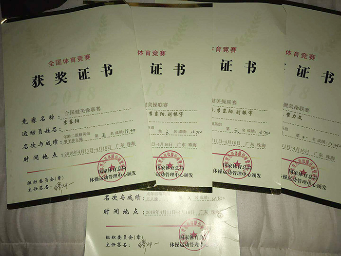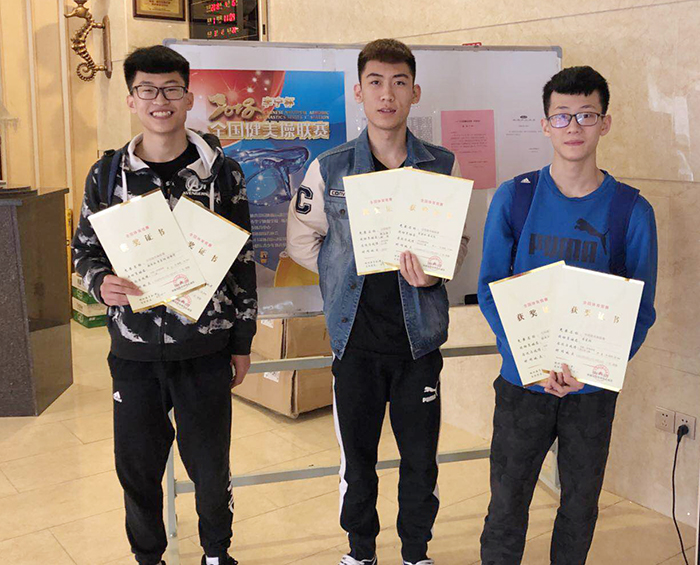 比赛中,我校2015级崔立文,2016级李东阳、刘振宇三名健美操队员代表学校参赛,经过激烈的角逐,李东阳获男单第五名、三人操第六名,刘振宇获三人操第六名,崔立文获五人操第八名的优异成绩,三人均获得2018全国健美操锦标赛、冠军赛的入场券。希望队员们再接再厉,在今年的锦标赛和冠军赛中取得优异的成绩,成功达级!