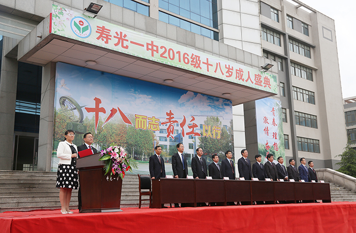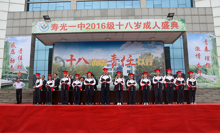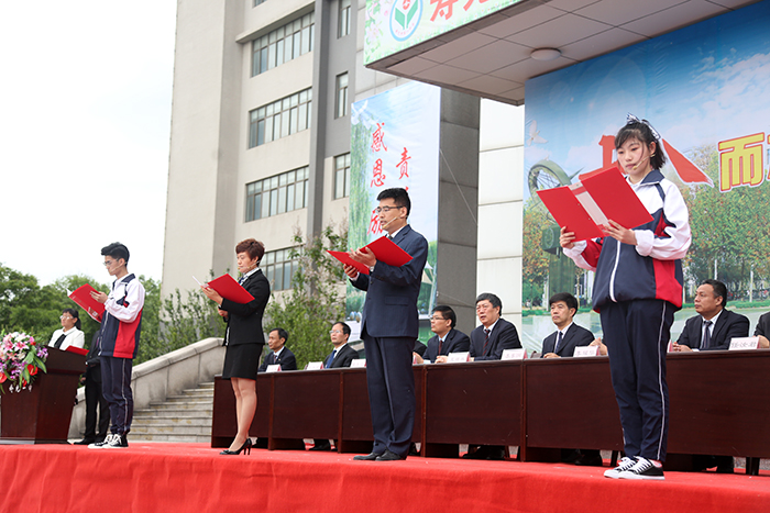 最后,仪式进入到最高潮的庄严宣誓环节。伴随动情的音乐和观礼家长们的热烈掌声,朝气蓬勃的2016级学子进行了“十八岁成人礼”宣誓仪式,全场2500多名学生高举右手,握紧拳头,郑重许下了迈入成人行列的豪迈誓言: 弘扬超越精神,燃烧热血青春;求真、崇善、创美、尚勇……那声音凝聚了内心的力量,化为诚挚的诺言,响彻校园。他们的宣誓,向社会、向父母、向老师宣告他们已经长大成人。这群18岁的青年将从此承担起宪法赋予的全部责任,并由此翻开人生成长的崭新篇章。