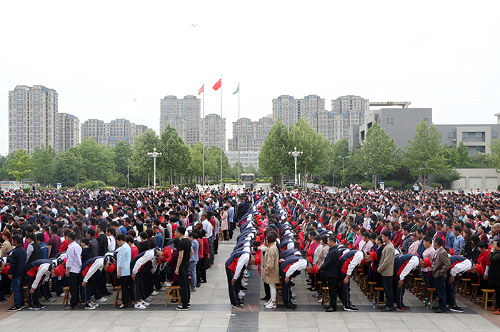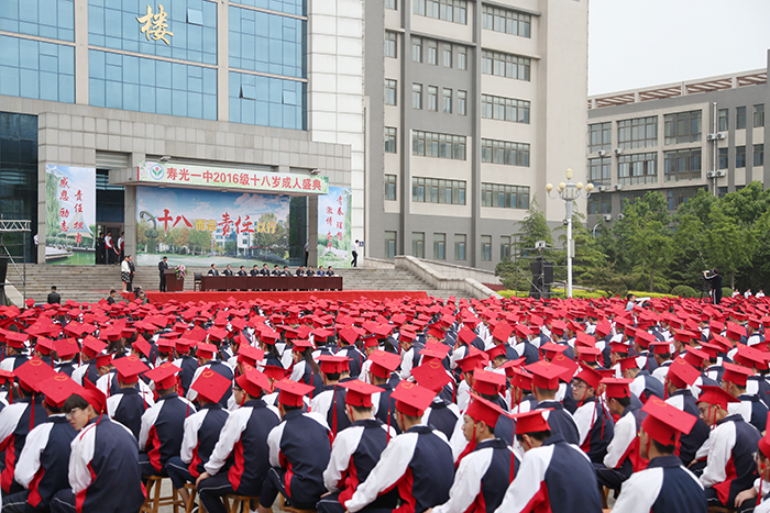 5月5日上午,我校为2016级全体学生举行了以“十八而志,责任以行”为主题的十八岁成人礼,为踏入18岁的学子们奉献了一场别开生面的“青春洗礼”。学校领导与5000多位学生和家长一道,共同见证一场庄严而华彩的成人礼,见证学子终身难忘的幸福时刻。
