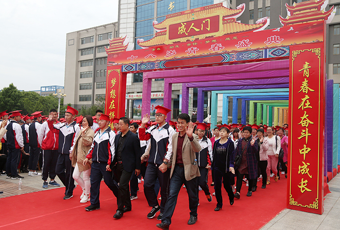 迈入成人门,走好人生路。学生们挽起家长的手,在音乐声中依次踏上红地毯,走过“成人门”,他们眼神坚毅、步伐坚定,每个人脸上都写满了温馨和喜悦。大门的两侧,是静心等候的学校领导,他们注视着每位跨过“成人门”的同学,为他们鼓掌祝福,祝愿他们长大成人,走好人生每一步。