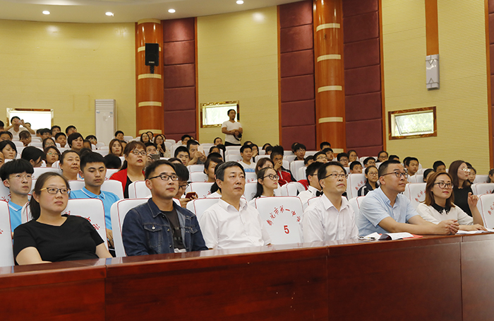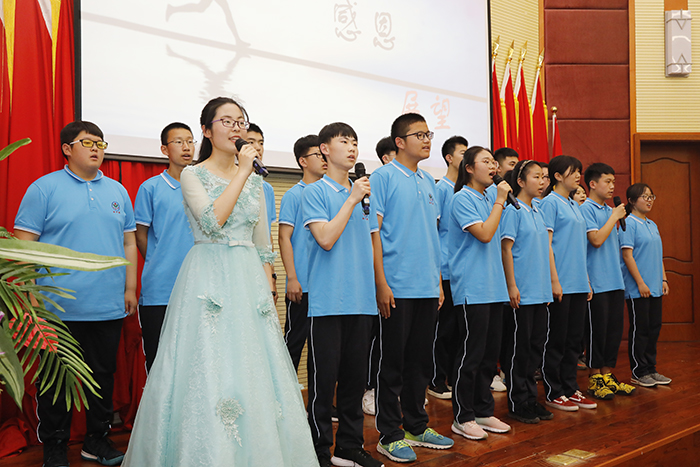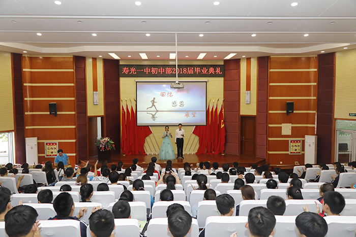 一年的洗礼,磨去了青春少年的轻狂肤浅,造就了斗志昂扬的沉稳执着;一年的洗礼,褪去了懵懂腼腆的天真稚气,张扬了自我选择的坚定信念。 5月24日下午,我校初中部为2018届学子举行了“回忆,感恩,展望”为主题的毕业典礼,与学生家长一起,共同祝贺他们顺利完成初中学业,为他们中考壮行。