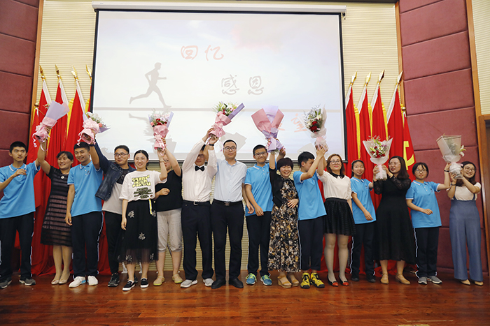“一年来,我们曾在同一条跑道上奔跑,也曾在同一片蓝天下的高歌,我们有过军训比赛共同创造的恢宏,有过元旦联欢会的同台献艺……”14点30分,毕业典礼开始,一段视频拉回了一年前的青葱时光,让同学们在一张张照片中找到了过去的自己,找到了在学校留下的踪迹,感悟成长的轨迹,体会青春的成熟……