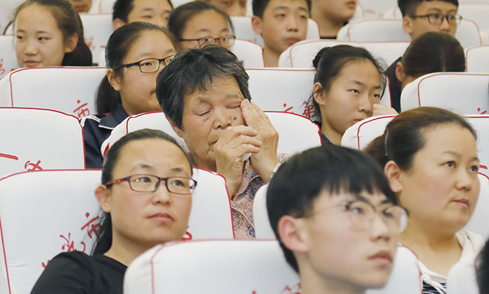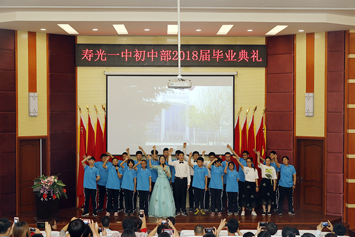 “感谢寿光一中,感谢老师,教会我们做人,教会我们求知。也许我们曾经任性,让您难过,也许我们曾经调皮,让您伤心。但请原谅我们,那是我们经历青春的真实故事。”14点35分,学生代表潘帅均发言,感恩母校和老师一路呵护,如今他们已经长大,他们会尽全力,以优异的成绩完成中考,报答培育他们的母校、老师和家长。