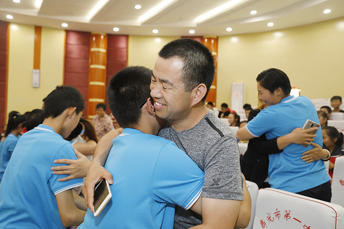 “你入学的新书包有人给你拿,你雨中的花折伞有人给你打,你爱吃的三鲜馅有人给你包,你委屈的泪花有人给你擦……”正如阎维文《母亲》中所唱,同学们成长的岁月中,父母付出了一切。在这暖流交汇的时刻,全体同学起立向父母深情鞠躬,道一声:“爸、妈,你们辛苦了。”