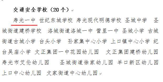 近日,寿光市教体局和寿光市公安局交通警察大队联合公布《2019年全市“平安行你我他进校园”作品获奖情况及获得“交通安全学校”的通知》,寿光一中8名同学获奖,学校获“优秀组织奖”,被授予“交通安全学校”称号。