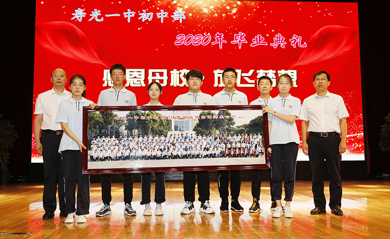 一份耕耘,一份收获。走过懵懂无畏的预备,成长于意气风发的初一、初二,收获于硕果累累的初三。初中部杨正乐、肖斌、李丙杰副校长,董香春主任为“三好学生”和获得各种技能竞赛的优秀学生颁发了荣誉证书。孙宗光校长为学生们颁发毕业合照,给他们送上了一份异常珍贵的临别礼物。