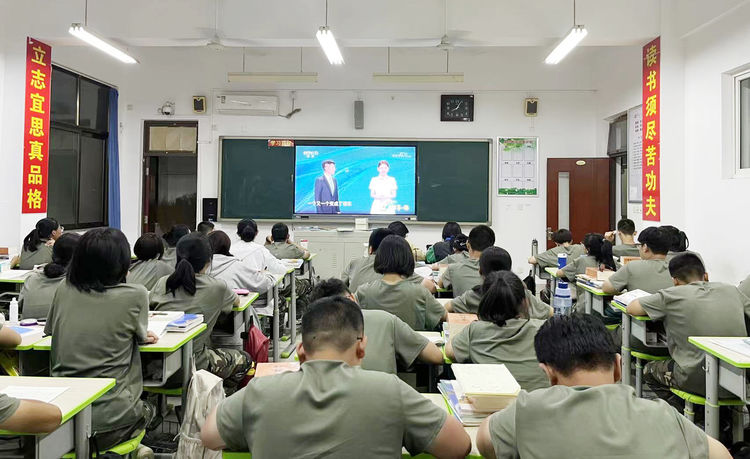 上好“思政课”,筑牢对党忠诚“生命线”,夯实思想素养“压舱石”。对学生开展爱国教育是入学教育系列的重要一环,学校通过召开国防教育报告会、开展校歌比赛、观看宣传片及央视《开学第一课》专题片等活动,教育学生要把强烈的爱国情感和坚定的爱国行为结合起来,弘扬民族精神,培养爱国情操,肩负起新时代青年的责任与担当,做有志青年、有为青年。