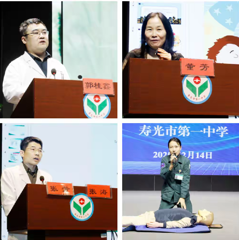 活动现场,人民医院肿瘤科郭桂鑫,心理咨询科董芳,急诊科张海、张芳医生,给学校教职员工带来了生动精彩的知识讲座。讲座采取互动的方式,用生动的事例,从肿瘤防治、良好睡眠、心肺复苏、海姆立克急救法等等方面入手,并搭配现场演示为在座教师带来鲜活实用的健康知识。