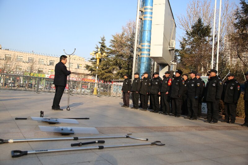 为确保安保人员能熟练、正确地操作安保设施设备。演练前,安全保卫处主任徐金光就演练活动进行了安排和分工,演示了正确的制止歹徒的动作、方法实战技能,并对保安进行了警械使用培训。
