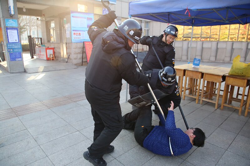 为增强校园安全防护工作,提升对突发性暴力事件的反应和处置能力,维护校园安全稳定,2月19日,寿光一中举行反恐防暴演练。