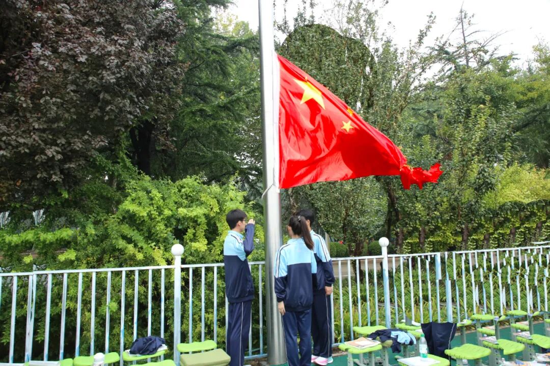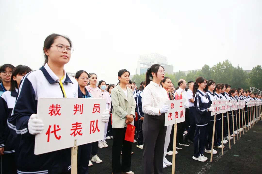 伴随着庄严的旋律,全体师生目视国旗高唱国歌,运动会正式拉开序幕。
