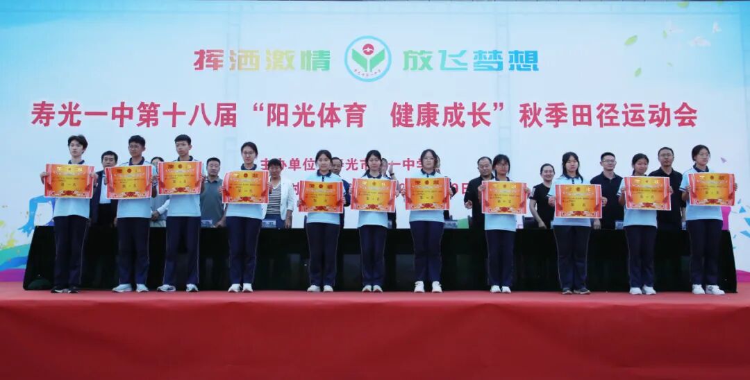 在闭幕式上,现场公布了比赛成绩和体育道德风尚奖获奖班级名单。学校领导班子为获奖班级颁奖。本届秋季运动会不仅是一场展现师生运动精神的盛会,更是寿光一中和衷共济、奋发向上、朝气蓬勃、不断创造辉煌的缩影!