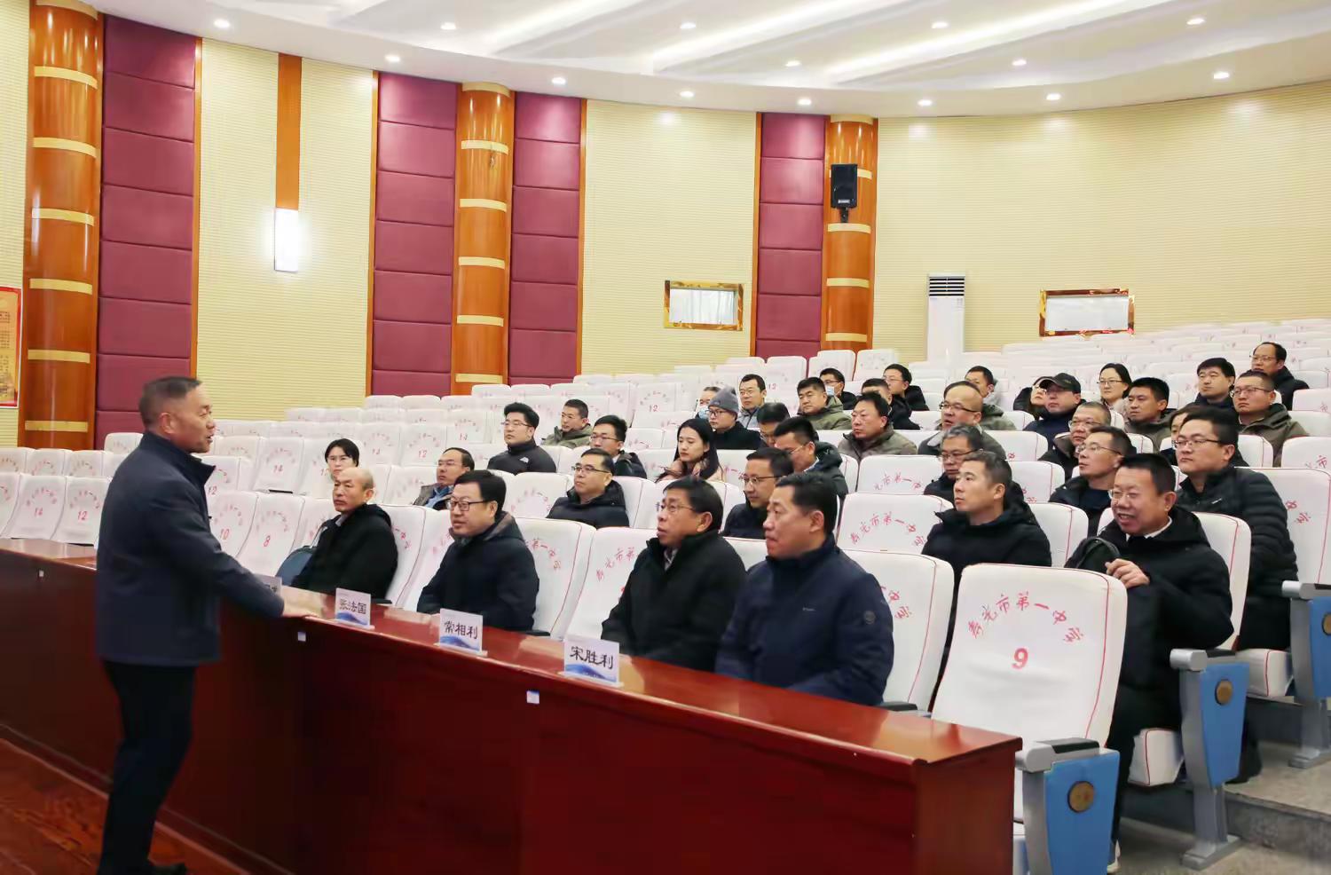 考察团抵达寿光一中后,首站走进学校四号报告厅,一场简短而热烈的欢迎座谈会拉开交流序幕。寿光一中党委书记毕德亮代表学校,向考察团的到访致以诚挚欢迎,期待双方优势互补、携手共进。昌乐县教体局党组成员、教研中心主任岳同龙代表考察团致谢,他明确此次交流旨在借鉴先进办学经验与科学育人方法,期盼以此为起点,建立常态化合作机制,深化多领域协同发展。