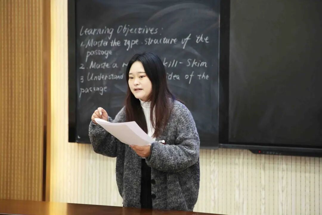 本次比赛设无生讲课、笔试、即席演讲三个环节,全面检验教师综合素养。无生讲课环节中,参赛教师凭借清晰的教学思路、精准的教学设计、规范的板书呈现,生动演绎了高效课堂的构建路径;笔试环节,聚焦英语教学理论素养、语言知识储备及实际运用能力,全面考察教师专业知识功底;即席演讲环节,重点考验教师语言表达的流畅度与准确性,综合评估选手的逻辑思维、时间把控及临场应变能力。