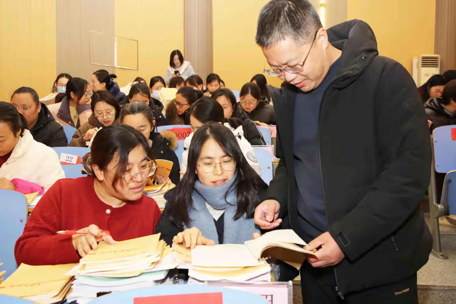 在教务处主任吴海生宣读评比细则与工作要求后,各年级学科组长与骨干教师迅速响应,通过逐本审阅、细致批注和集体研讨,全面梳理各学科常规落实的亮点与不足,并针对性地提出改进建议。参与教师也以此为契机,积极交流、对照反思,在互学互鉴中明确自身改进方向。