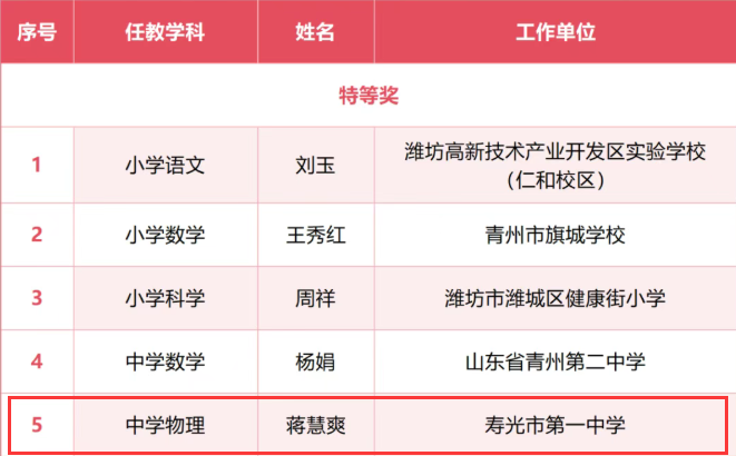 近日,山东省教育厅、山东省总工会联合公布2025年全省中小学青年教师教学竞赛获奖名单。经过市级初赛、省级决赛、严格公示等层层选拔,寿光一中蒋慧爽老师荣获中学物理特等奖。
