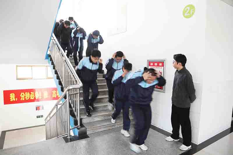 为进一步强化师生安全教育意识,提高师生自救能力和学校应对突发事件的综合能力,培养学生终身受益的安全素养,在第31个“全国中小学生安全教育日”之际,3月26日上午,寿光一中组织全体师生进行“安全教育日”防踩踏疏散演练。