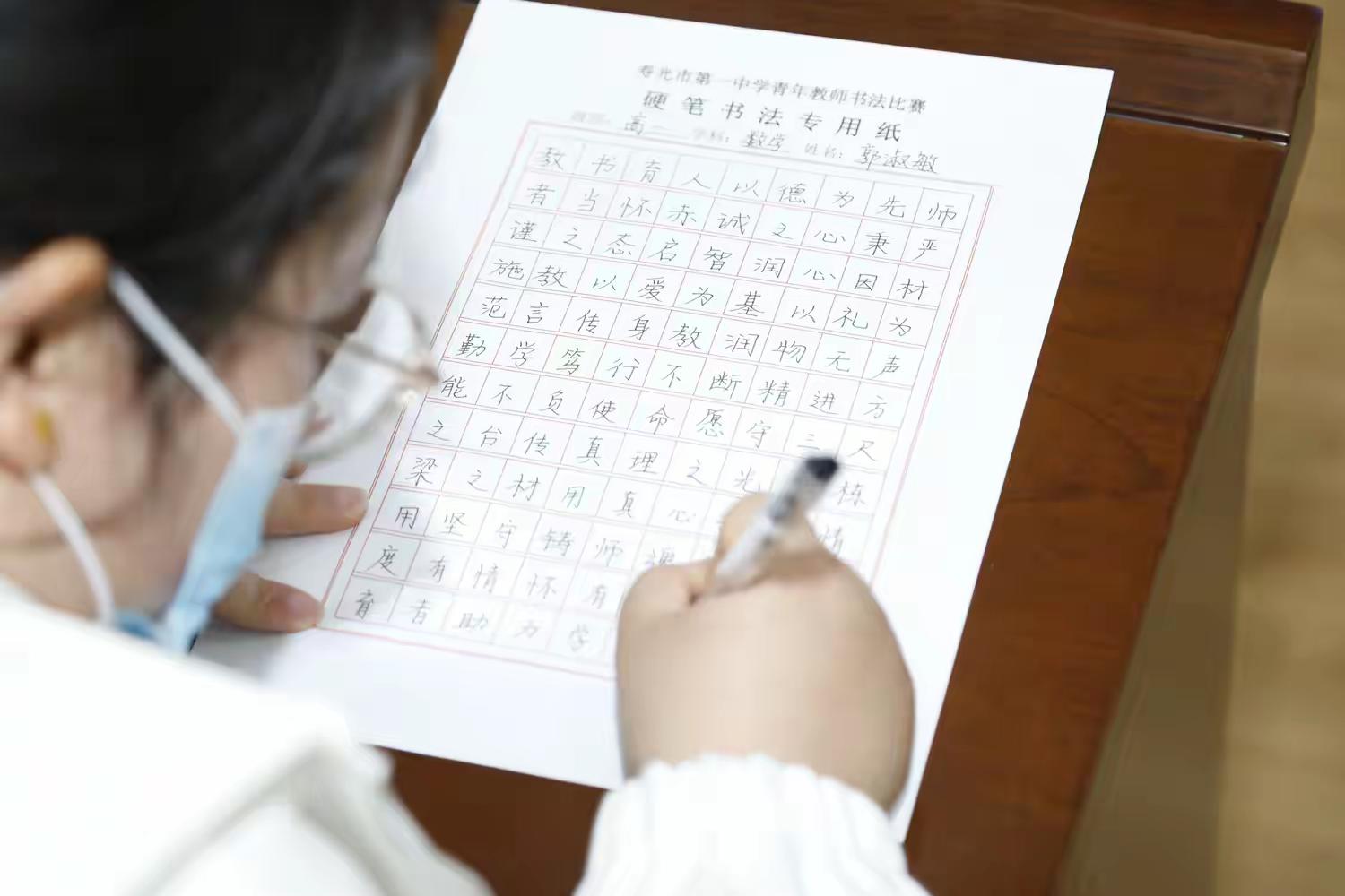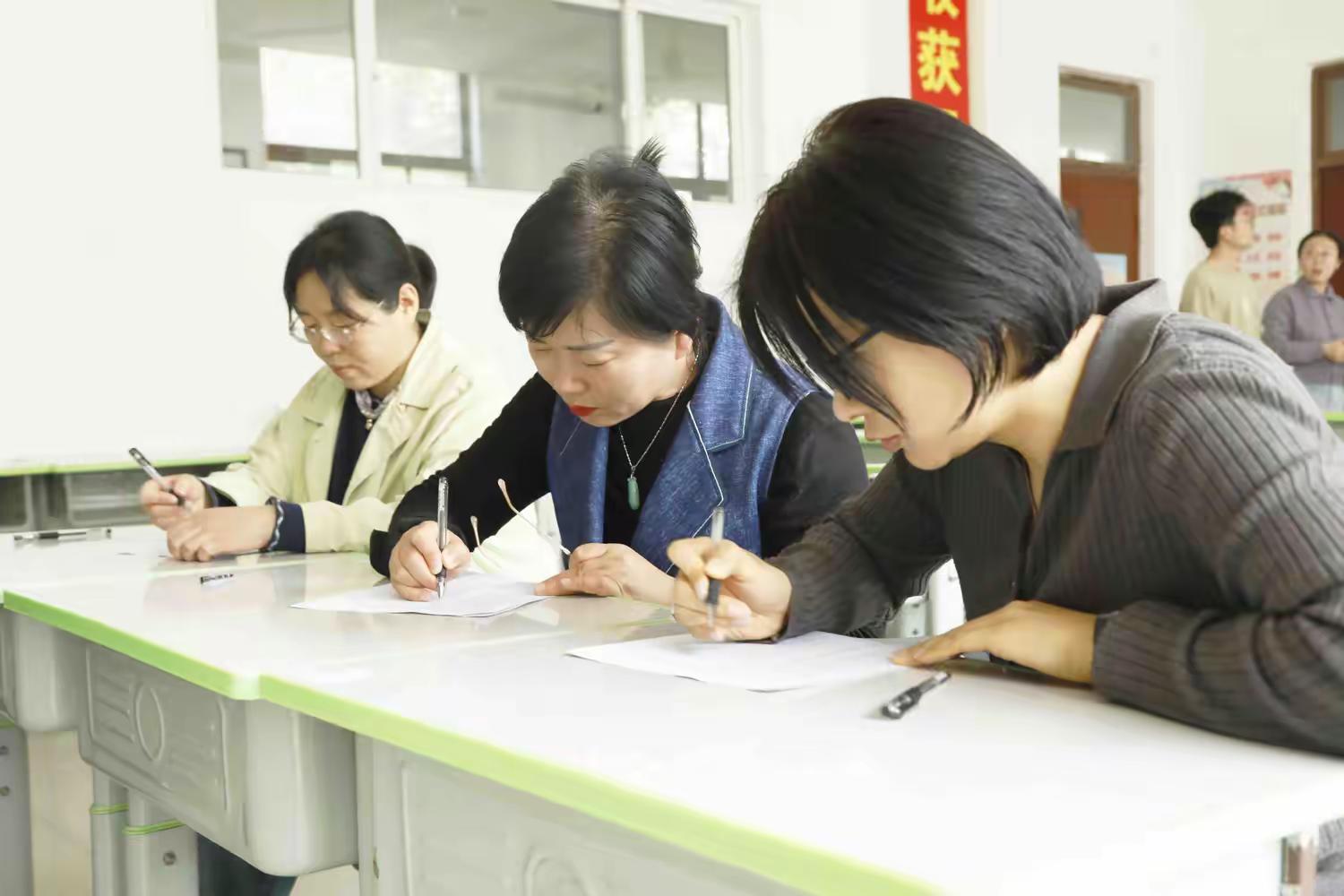 评审环节采用 “现场创作 + 即时点评” 模式,学科带头人及骨干教师从笔法规范、结构布局、艺术表现力三方面综合打分,并逐一对参赛作品进行专业指导。“起笔需稳,收笔要利落”“结构需兼顾平衡与灵动” 等建议直击要点,为青年教师指明精进方向。