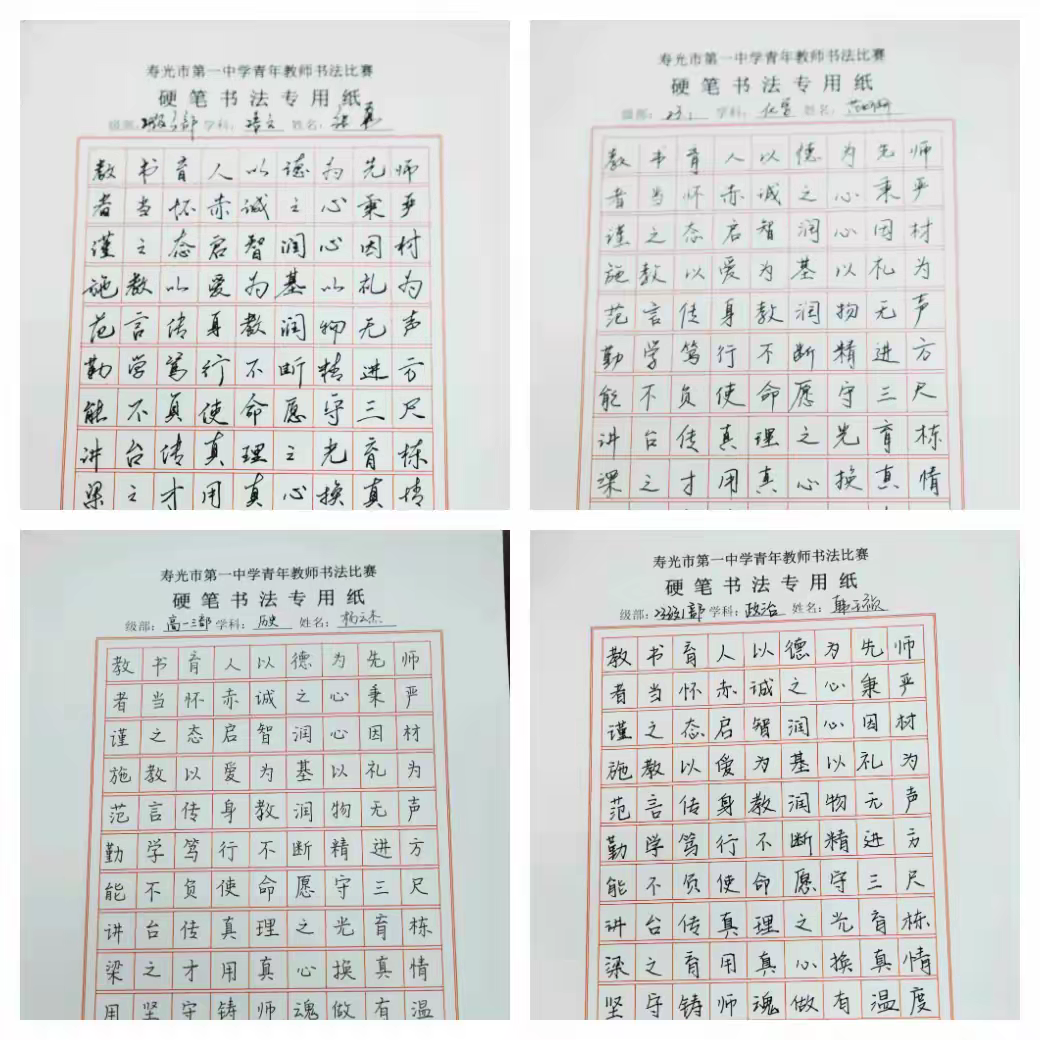为夯实青年教师教学基本功,助力专业素养提升,4月15日,寿光市第一中学举办“青蓝工程”青年教师基本功硬笔书法比赛。来自所有学科的65名青年教师同台竞技,以笔墨展现教学功底与文化风采。