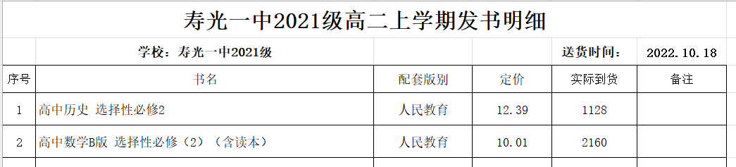 寿光一中2021级高二上学期发书明细