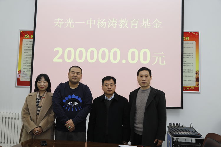 12月10日,校友杨涛来到寿光一中,与学校副校长梁本江签订了教育基金协议,向母校捐资20万元,成立“寿光一中杨涛教育基金”,奖励品学兼优、家庭困难的学生。而在此之前,杨涛校友就多次捐资助学,在2018年,向受灾一中学子捐款4万余元。