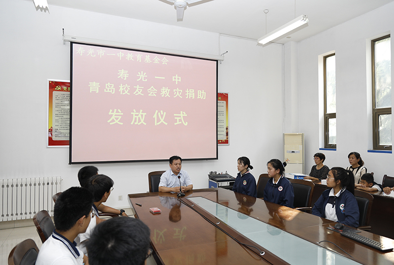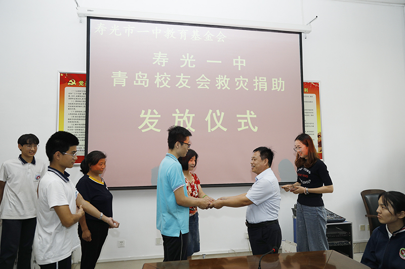 9月30日,我校在第一会议室举行了青岛校友会救灾捐助发放仪式,向在今年洪灾中受灾的家庭发放爱心捐助款共计28000元,学校副校长梁本江主持活动。